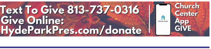 Make a check payable to HPPC with Love Gift noted. Or check “Love Gift” in Easy Tithe or Church Center. It will most appreciated as she sets up her new residence out of state.